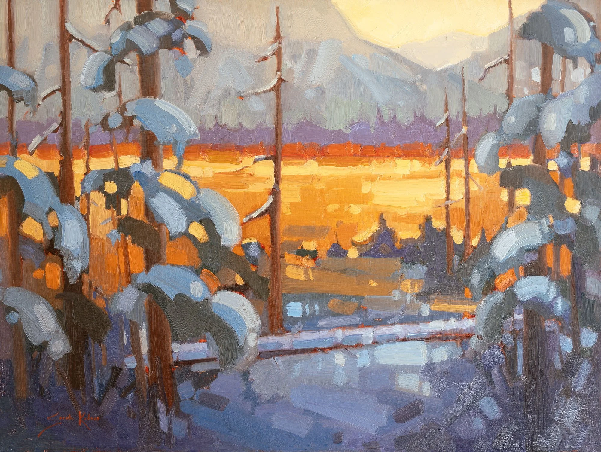 Sarah Kidner painted this work of modern impressionist landscape painting with oil on a cradled birch panel. You may view this piece of art on The Balcony, which is located on the hotel's second floor.