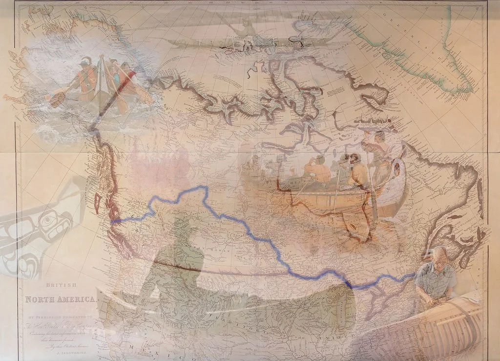 The Arrowsmith Map, positioned behind the front desk, is the artwork that draws the most attention on the main level. It is a replica of the 1832 Arrowsmith Map, which was the first thorough map of all of Canada. It depicts the path taken by fur trade surveyors and cartographers, such as David Thompson, as they learned about Canada from its east to its west.